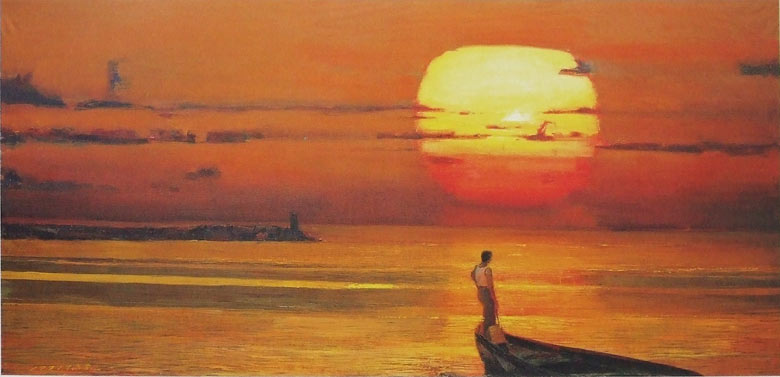 作品:太阳升起在东方 作者:高泉 规格:152*73 出版 价格:<<高泉的海>>2004年,天津美术出版社.第一页
