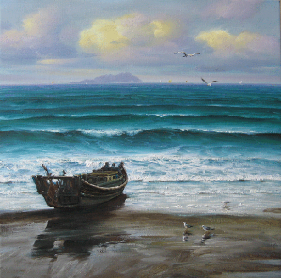 作者简介:陈明,1950年出生於山东省胶南市,中国美术家协会会员,山东胶南市画院院长。当代著名海景油画家。1978年,作品《如饥似渴》被《美术》选为第一期封面。1993年,作品《海趣》在第五届全国年画展获奖。2001年作品《国泰民安》等入选第六届全国年画展。人民美术出版社等出版他的年画和油画160多幅,印刷5000多万张,发行国内外。作品在“嘉德”等拍卖会有良好的