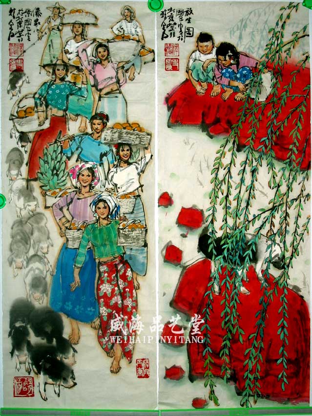 作品:四条屏之[ 1.2 ]傣家小景.放生图 作者:史国良 规格:82cm * 30cm 价格:藏品展示
