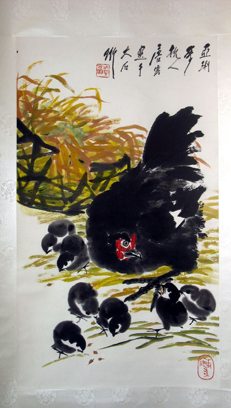 作品:母子情深 作者:唐云 规格:80*46 价格:经其子唐逸览鉴定,并合影;录像