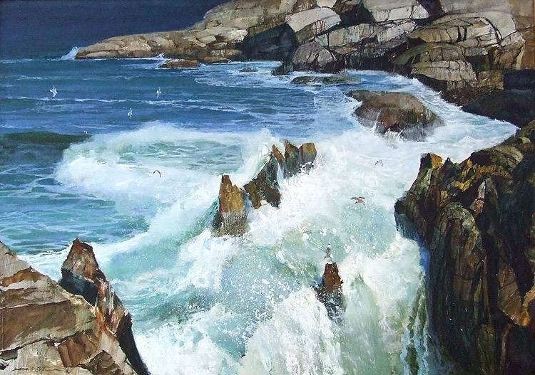 作品:浪瀑 作者:高泉 规格:162*114 出版 价格:<<高泉的海>>2004年,天津美术出版社